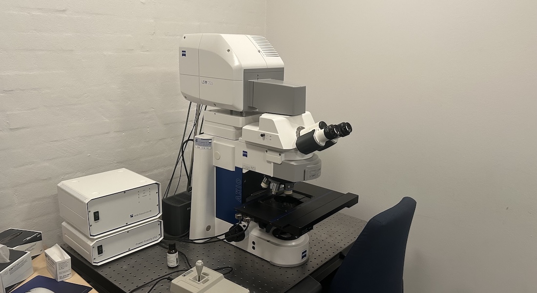 Laser scanning confocal microscopy has become the golden standard in imaging biological samples, as it allows for good resolution and flexibility in stainings. LSM700 is a simple upright laser scanning confocal microscope optimal for imaging fixed triple stained (Blue, Green and Red / Far-red) samples.