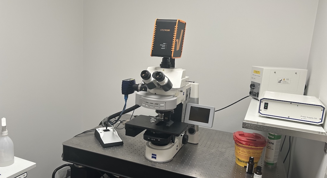 This microscope can also be used as an upright widefield microscope controlled by Zeiss' ZEN.